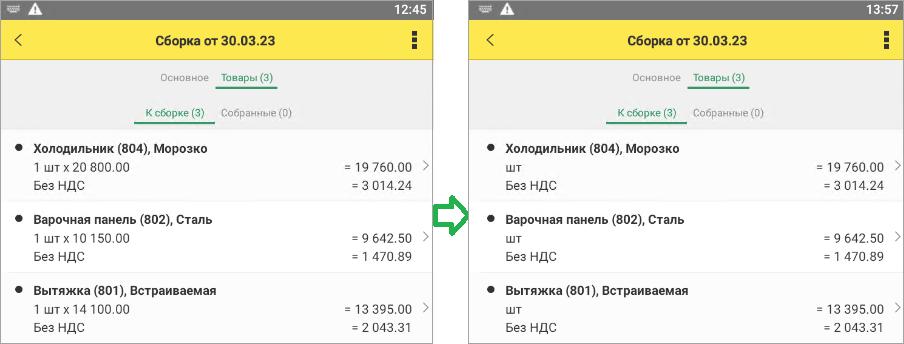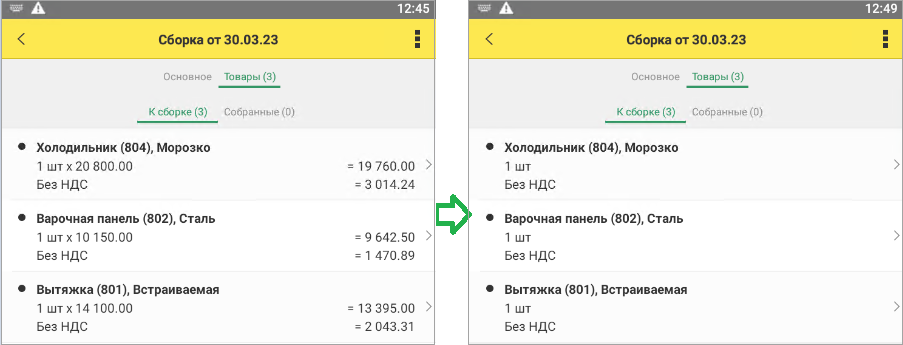Шаг 3. Оформление сборки товара в мобильном приложении: заполнение фактических данных.