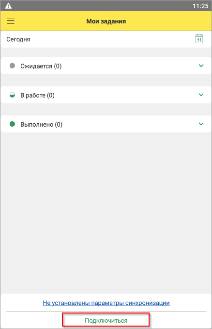 После запуска приложения откроется основная форма приложения "Мои задания", если это первый запуск приложения, то в нижней части формы будет указание о том, что подключение еще не настроено.