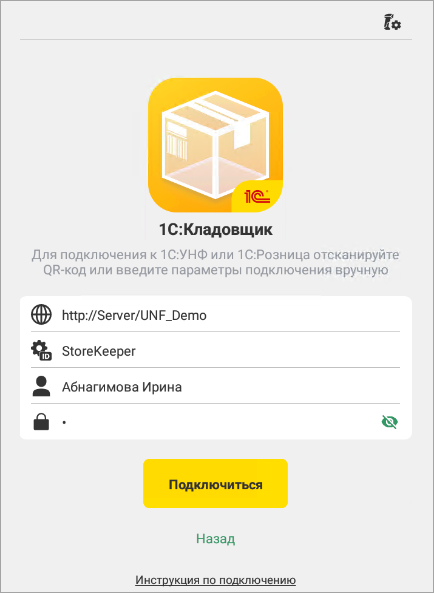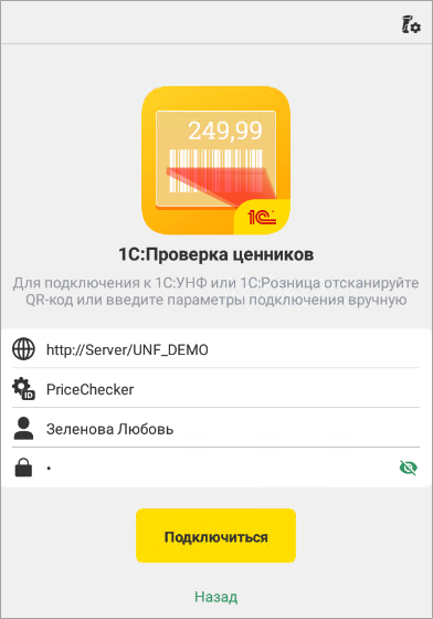 При подключении с помощью QR-кода автоматически заполняются поля с адресом публикации, идентификатором настройки и именем пользователя.
