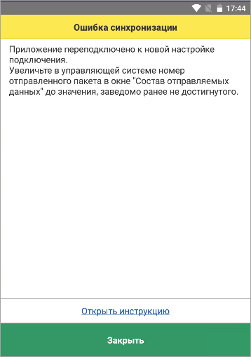 Самая часто возникающая ошибка, мешающая первой синхронизации, — это ошибка "Управляющая система недоступна".