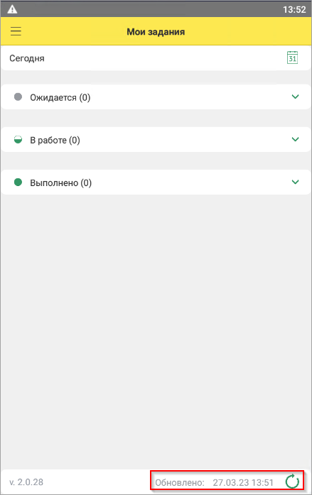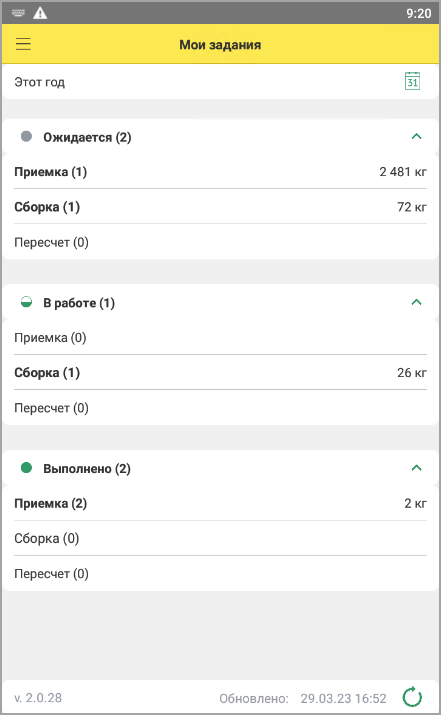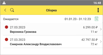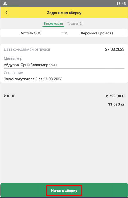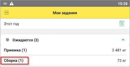 После успешного обмена в разделе "Мои задания" мобильного приложения отразится документ "Сборка" со статусом "Ожидается".