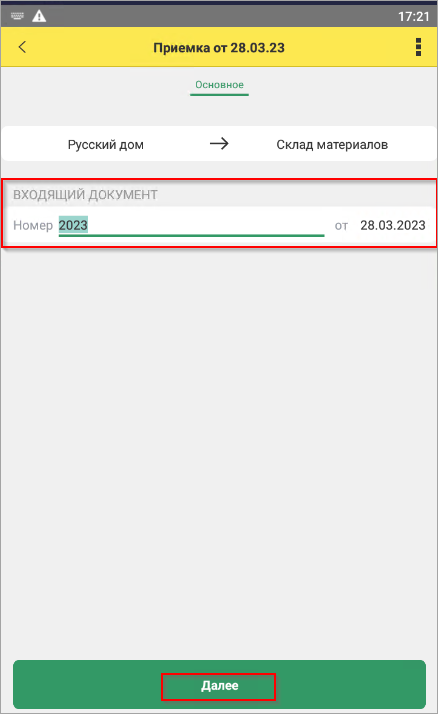 Шаг 3. Оформление приемки товара в мобильном приложении: заполнение фактических данных.