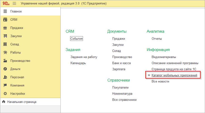 В разделе Главное выберите пункт меню Информация – Каталог мобильных приложений