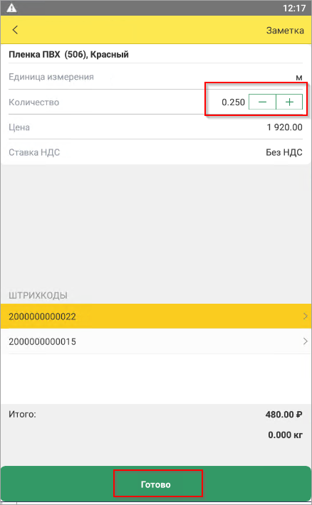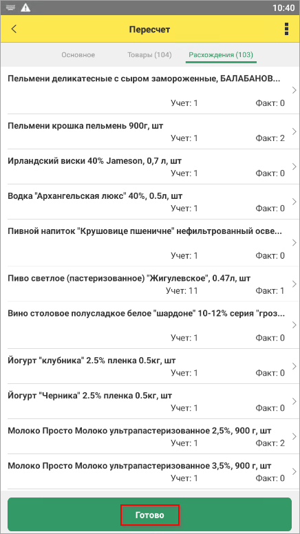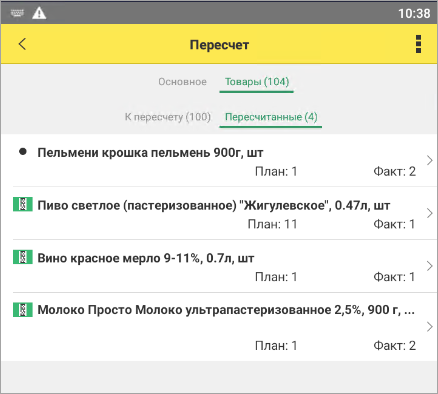 Шаг 3. Оформление пересчета товара в мобильном приложении: заполнение фактических данных
