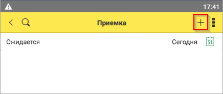 Если при настройке обмена была включена функция "Ввод поступлений без распоряжений", то в списке документов "Приемка" будет доступна кнопка добавления нового документа, без предварительной загрузки задания на приемку.
