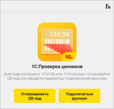 После того как был сформирован QR-код можно выполнять подключение в мобильном приложении, при первом запуске приложение попросит выбрать режим его дальнейшей работы: выберите "1С:Проверка ценников" и нажмите на кнопку "Начать работу".