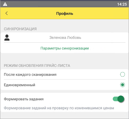 Переключатель "Формировать задания" в режиме "Единовременный" отвечает за создание записей списка заданий на проверку – дополнительного сигнала об изменении цены, полученного при последней синхронизации.