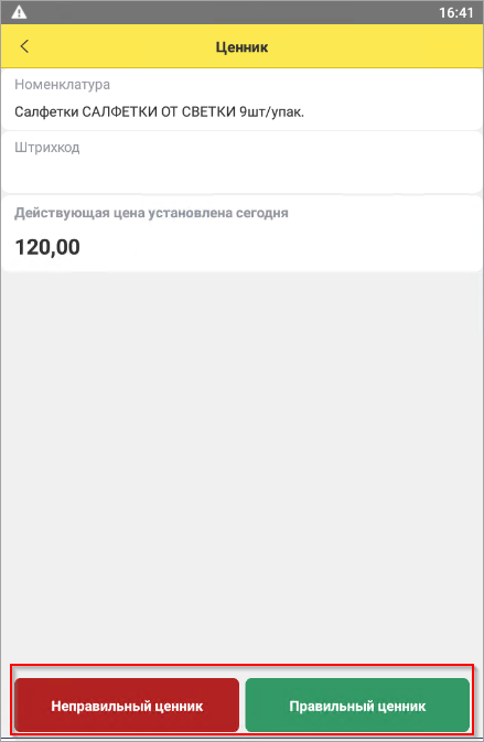 Сравните цену на ценнике с ценой, показанной в форме данных товара, решите является ли этот ценник правильным, после чего нажмите на соответствующую кнопку.