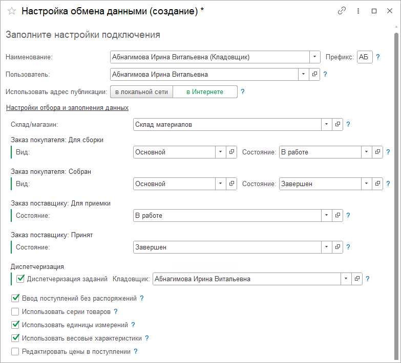 Теперь в форме создания настройки синхронизации можно ввести понятное наименование настройки.