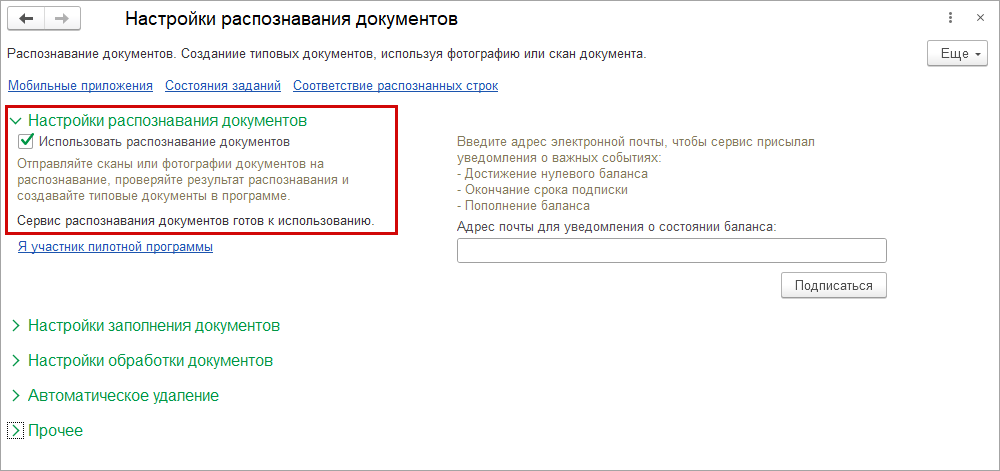 Убедитесь, что установлен флажок "Использовать распознавание документов".