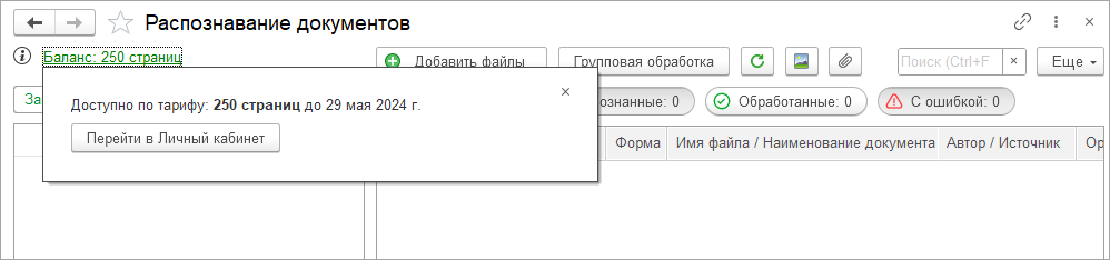 В рамках сервиса предоставляется распознавание 250 страниц сроком на 1 год.