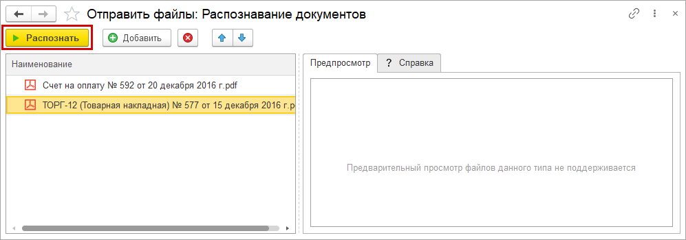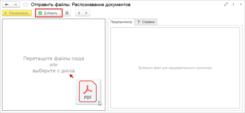 из списка документов откроется форма "Распознавание документов: выбор файлов".