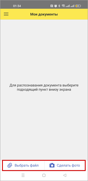 При успешном подключении, вам будет предложено выбрать файл из папки или сфотографировать документ.