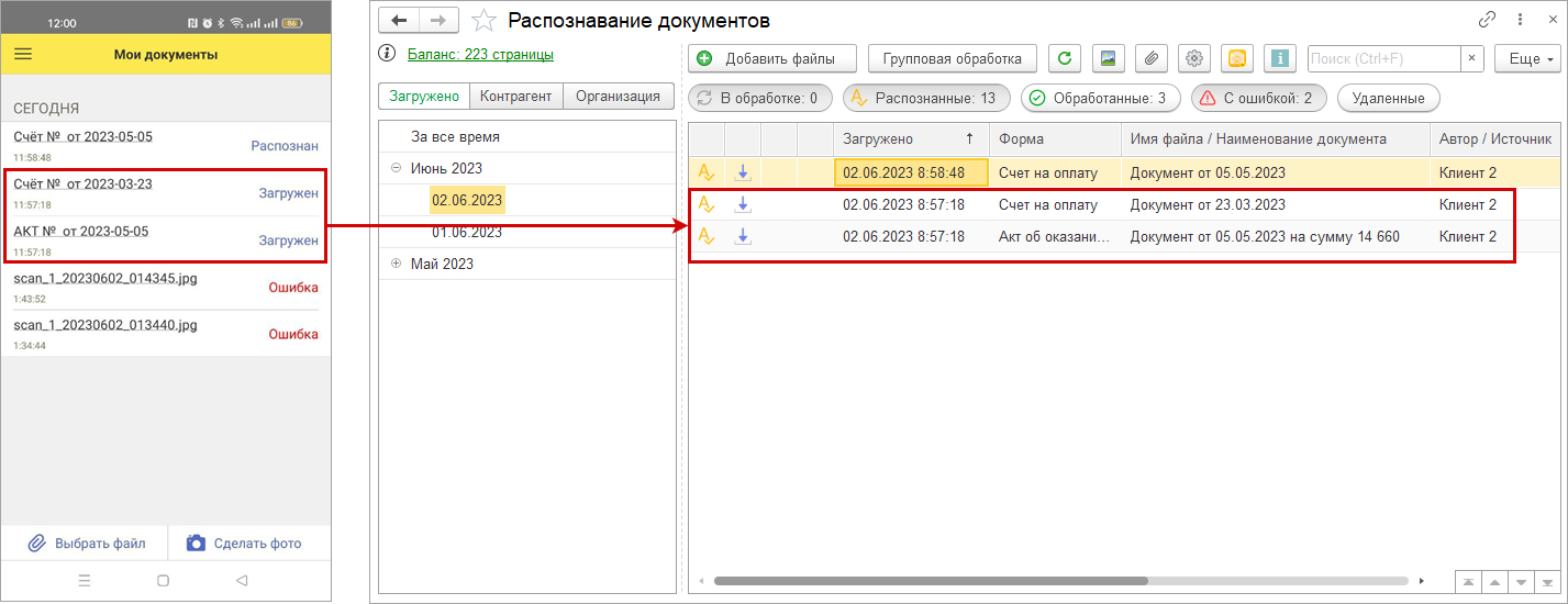 А еще можно подключить ваших контрагентов через мобильное приложение, чтобы они сами отправляли документы прямо к вам в базу.
