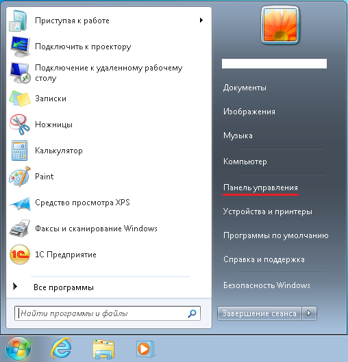 и выберите пункт Панель управления.