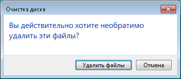 - В окне сообщения нажмите кнопку Удалить файлы.