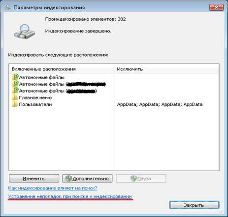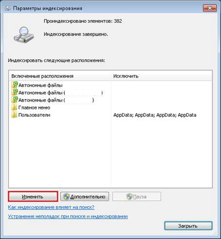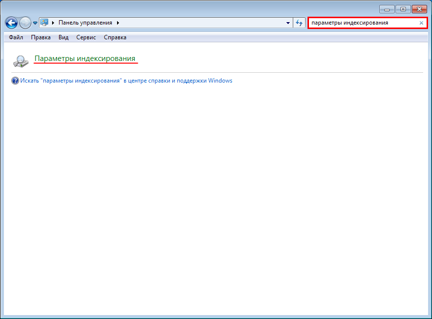 и выберите пункт Панель управления. В поле поиска введите параметры индексирования и затем выберите пункт Параметры индексирования.