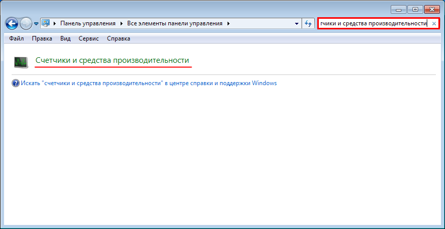 и выберите компонент Панель управления. В поле поиска введите Счетчики и средства производительности, а затем в списке результатов выберите пункт Счетчики и средства производительности.