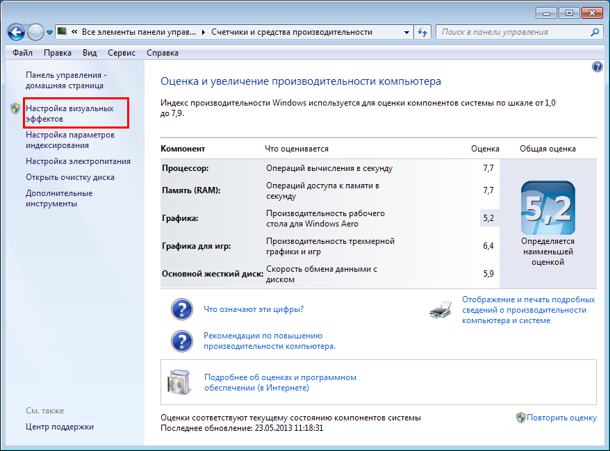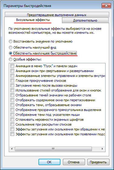 Отключение визуальных эффектов