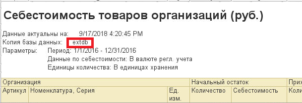 По окончании его формирования в заголовке табличного документа будет указана копия базы данных, из которой получены данные и дата актуальности данных.