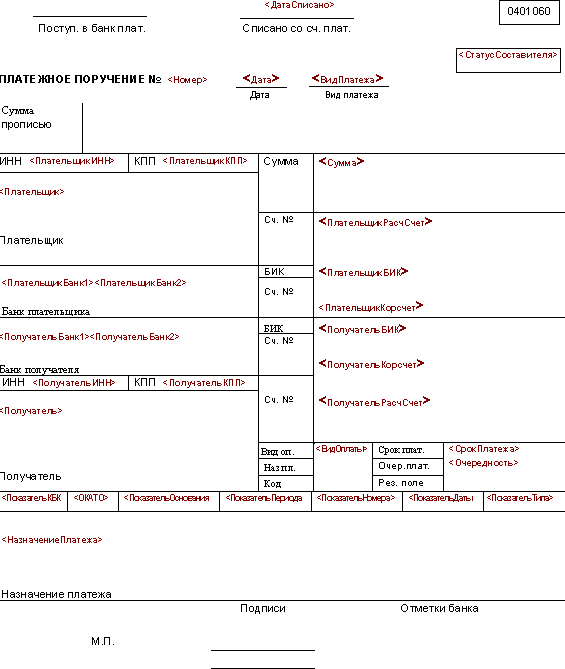 Из "1С:Предприятие" в "Клиент банка" передаются следующие документы платежной системы Российской Федерации: