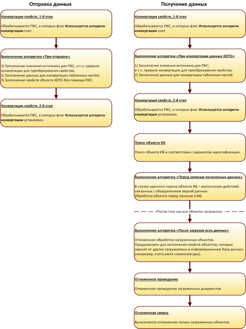 Общий порядок выполнения правил конвертации при выполнении процедур отправки и получения данных представлен на схеме: