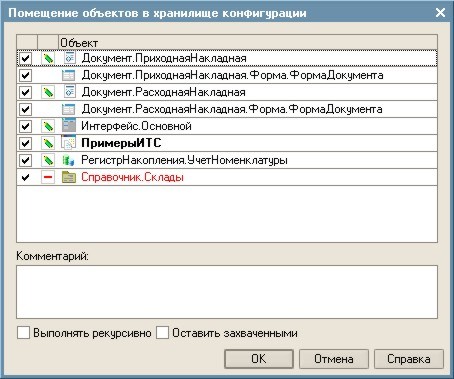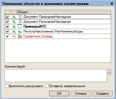 Объект помещен в хранилище: ПримерыИТС Объект помещен в хранилище: Документ.ПриходнаяНакладная Объект помещен в хранилище: РегистрНакопления.УчетНоменклатуры Объект помещен в хранилище: Документ.РасходнаяНакладная