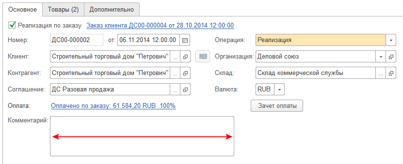 Для отображения ширины поля Комментарий в привычном режиме рекомендуется воспользоваться вариантом настроек, описанном в предыдущей рекомендации: