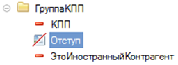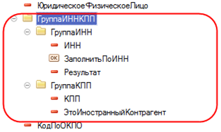 В "1С:Предприятии" версии 8.3.7 эта же задача решается без декорации, при помощи снятия флажка "Объединенная" у групп "ГруппаИНН" и "ГруппаКПП" и добавления внешней группы "ГруппаИННКПП":