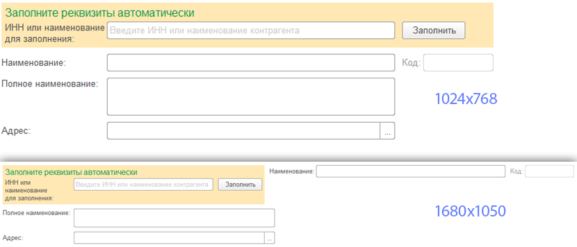 Существенно изменился внешний вид форм контактной информации. Удалось избавиться от большинства лишних параметров выравнивания, уменьшилось количество генерируемых элементов, по-умолчанию заголовки полей ввода теперь размещаются слева (не связано с "1С:Предприятием" версии 8.3.7).