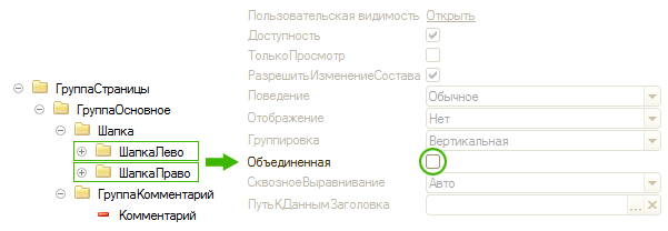 В этих случаях необходимо снять с групп реквизитов флажок "Объединенная":