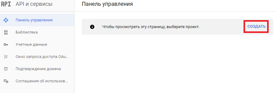 В первую очередь необходимо перейти в консоль разработчика Google: откройте в браузере страницу https://console.developers.google.com, используя учетные данные пользователя (существующего, либо созданного на этапе 1.1)