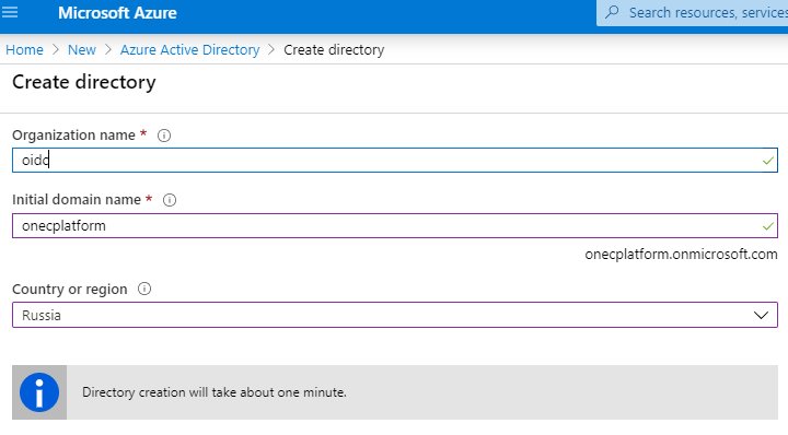 Обязательным условием для провайдера маркеров доступа Microsoft Azure AD является настроенный Azure Active Directory. Если в вашей учетной записи уже настроен Azure AD, данный раздел можно пропустить. Для настройки необходимо перейти на страницу портала https://portal.azure.com и нажать ссылку «Create a resource».