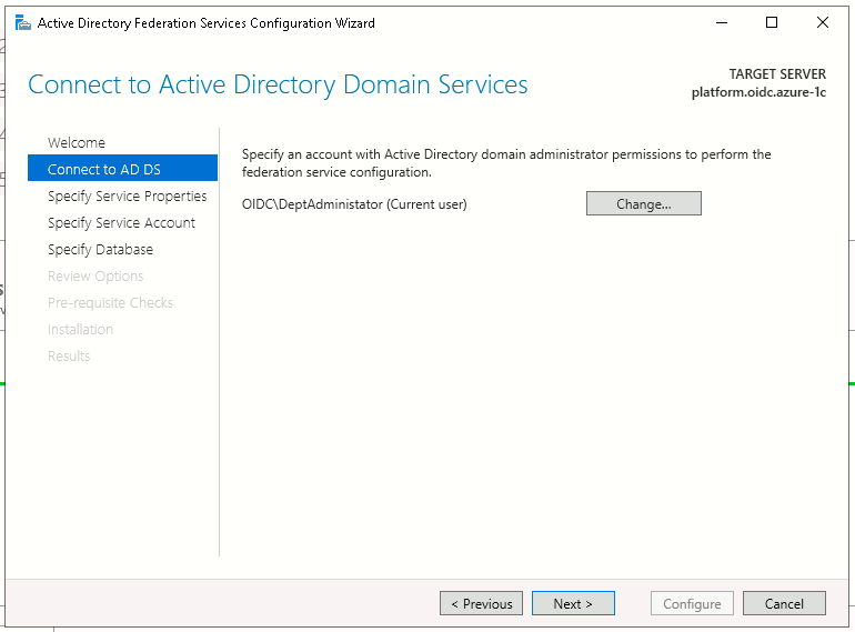 После установки компонентов в открывшемся окне предупреждения консоли сервера необходимо нажать на «Configure the federation service on this server».
