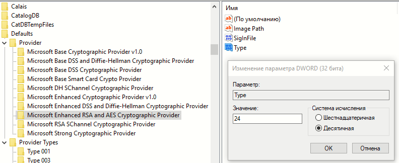 HKEY_LOCAL_MACHINE\SOFTWARE\Microsoft\Cryptography\Defaults\Provider