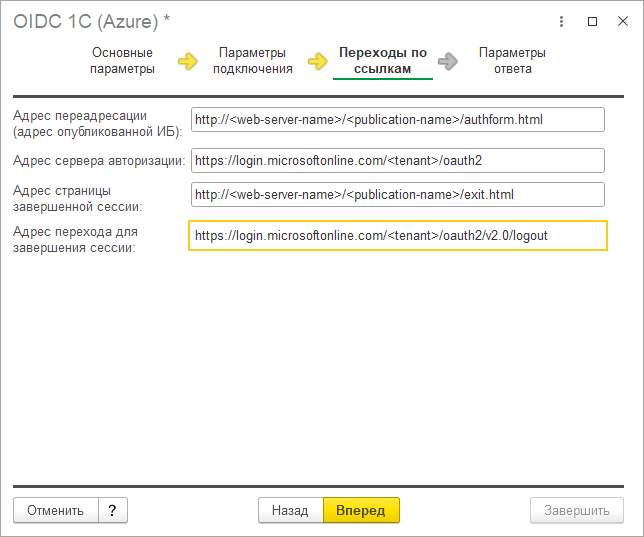 На заключительном шаге регистрации Azure AD необходимо заполнить следующие поля: