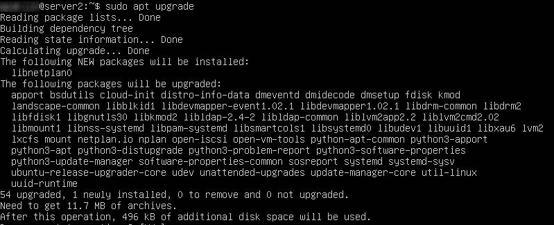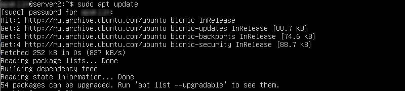 В выводе результата команды можно увидеть, что доступны обновления. Рекомендуются их обновить с помощью команды (подсказка "Run ‘apt list –upgradable’"):