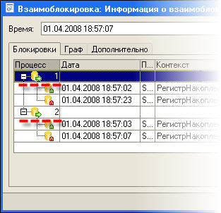 Как правило, для анализа взаимоблокировок данного вида необходимо использовать информацию, предоставляемую "Центром управления производительностью".