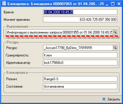 При двойном клике на первой блокировке процесса 1 откроется форма подробной информации о блокировке. Эта форма, в частности, содержит ссылку на выполнение интересующего нас запроса: