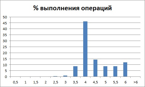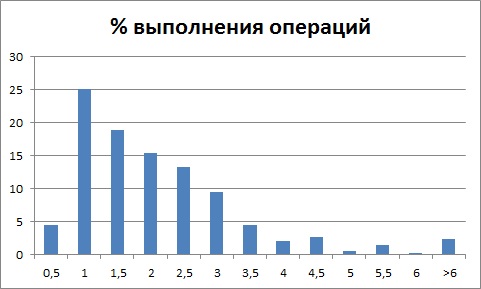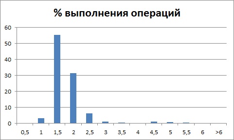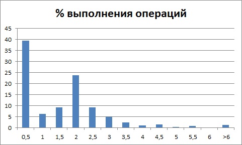В результате анализа распределения времени выполнения операции, видим за какое время чаще всего выполняется операция.