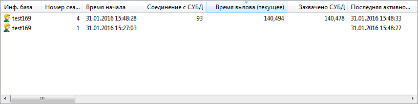 Первые две колонки - номер сессии с СУБД и длительность транзакции.