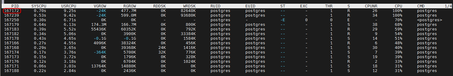 Чтобы понять какой запрос нагружает оборудование, необходимо взять PID самого нагруженного процесса.
