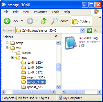 По умолчанию технологический журнал включен, и настроен на сохранение минимальных дампов при аварийном завершении приложения в каталог C:\Documents and Settings\<ИмяПользователя>\Local Settings\Application Data\1C\1Cv8\dumps. При необходимости может быть выполнена произвольная настройка журнала регистрации с помощью отдельного конфигурационного файла.