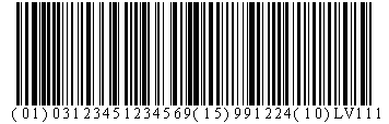 Пример символа UCC/ EAN-128, представляющего Глобальный номер предмета торговли GTIN, дату реализации и номер партии.