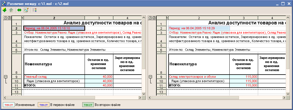 Сравним отчеты и посмотрим на различия: