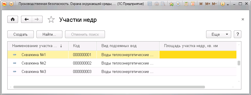 Подраздел «Участки недр» предназначен для просмотра и формирования списка участков недр, предоставляемых предприятию в пользование. Чтобы открыть подраздел, нажмите гиперссылку Участки недр в главном окне раздела. При этом открывается одноименное окно.