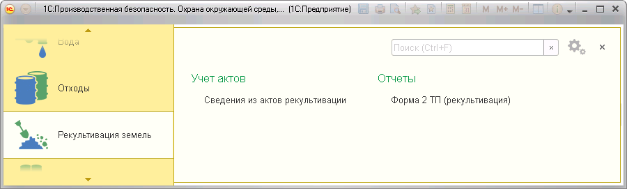 Раздел «Рекультивация земель» предназначен для ввода данных сведений из актов рекультивации: ввода информации о нарушенных землях, ввода данных о рекультивированных землях, ввода данных о снятии плодородных слоев почвы и использовании почвы. Также в разделе имеется возможность формирования отчета 2 ТП (рекультивация): Сведения о рекультивации земель, снятии и использовании плодородного слоя почвы.