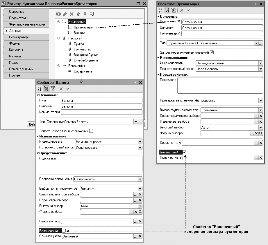 Задачи, которые решаются с помощью измерений регистра бухгалтерии, как и сами измерения из ветки Измерения закладки Данные регистра бухгалтерии, можно разделить на две группы: ведение раздельных балансов и получение сводной отчетности (балансовые измерения) и разделение отдельных (или всех, но встречается это реже) разделов учета по какому-то признаку.