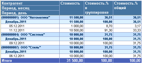 Создадим отчет, который будет отражать объем продаж по контрагентам с детализацией данных за указанный период (рис. 2.166).