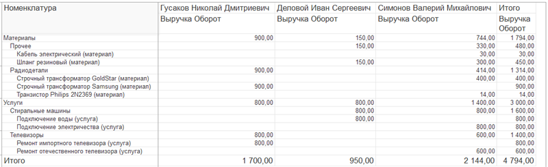 Мы покажем, как сделать отчет максимально универсальным, чтобы позволить пользователю в режиме 1С:Предприятие, не обращаясь к полным настройкам отчета (не выполняя Еще > Изменить вариант…), изменять его структуру и внешний вид. Например, поменять местами строки и колонки таблицы или изменить данные, выводящиеся в ячейках таблицы.